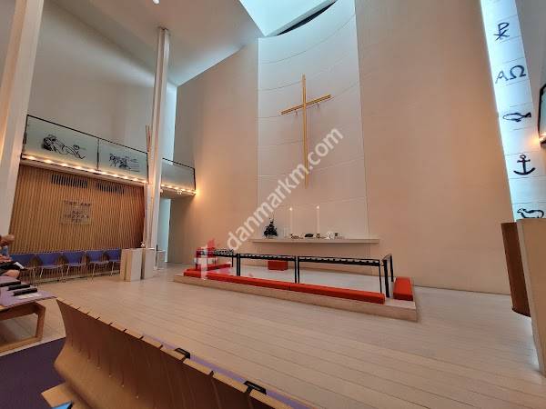 Pæn og moderne kirke i Allerød, enkel i sit udtryk.