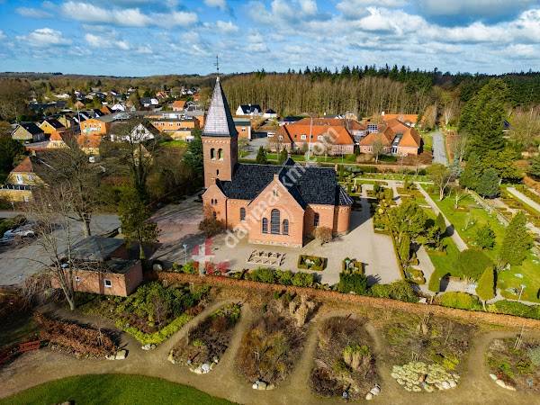 Flot mellemstor rødstenskirke i den nordre del af Glamsbjerg.nKirkegården er flot og velplejet.nVed siden af kirke/kirkegård, er der anlagt en lille park med en sø. Det kommer til at blive et hyggeligt sted, når bevoksningen dækker helt.