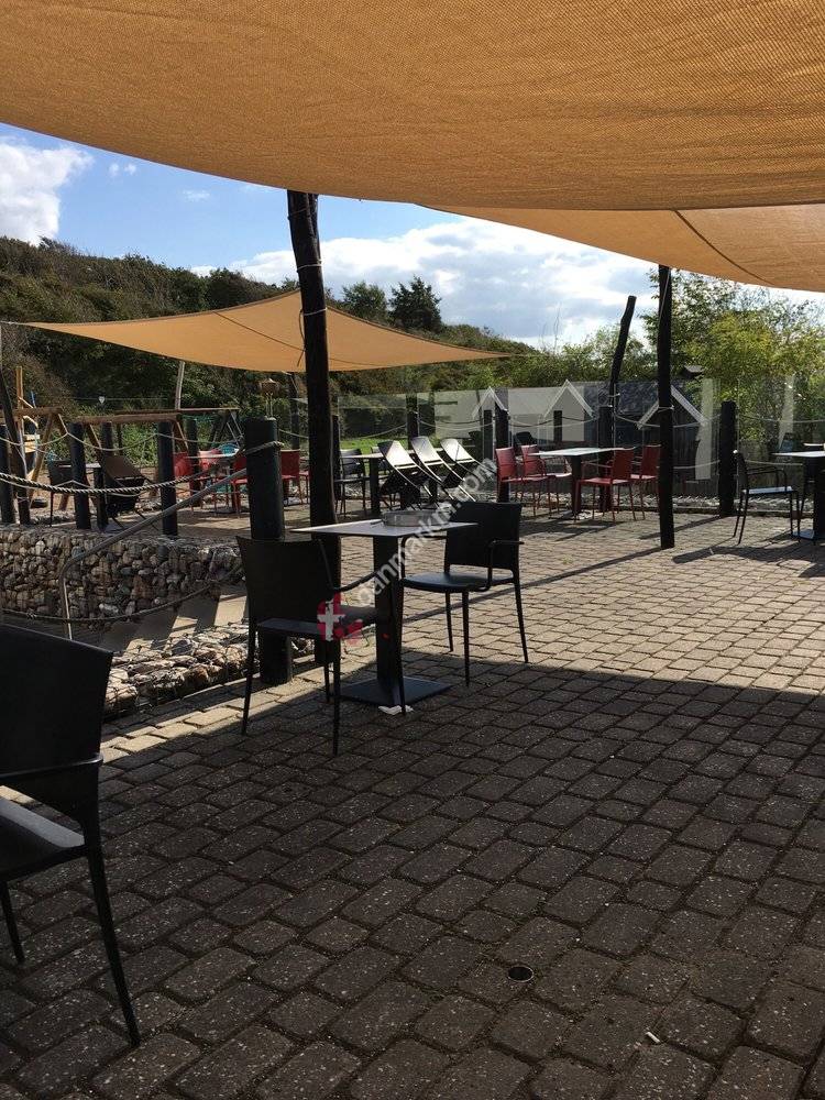 En lækker frokost fik vi her med herlig udsigt. En fortolkning af et stjerneskud med blandt andet tun og tangsalat var på den ene tallerken. Måske en udgave der deler vandene, men jeg nød hver en bid af den flot anrettede ret. På den anden tallerken var der dampede muslinger med hvidløg. Friske og velsmagende muslinger .Fonden / saucen kunne efter min smag godt have smagt af mere. God betjening og kommer vi på de kanter igen, skal bi med garanti prøve aftenkortet.
