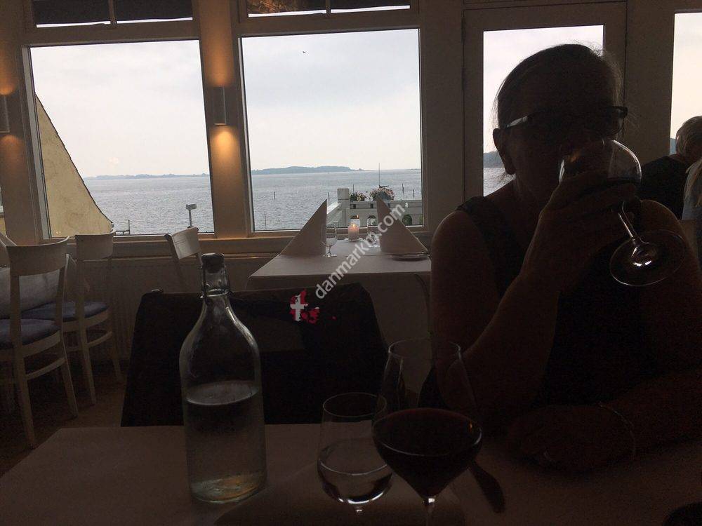 "I vores restaurant i vandkanten, serverer vi velsmagende mad lavet med passion. Til frokost serverer vi smørrebrød, som man kan nyde på vores hyggelige terrasse, når vejret tillader det. Vores restaurant er indrettet i hyggelig badehotel-stil, hvor man om aftenen kan få en gastronomisk oplevelse med vores sæsonmenu."