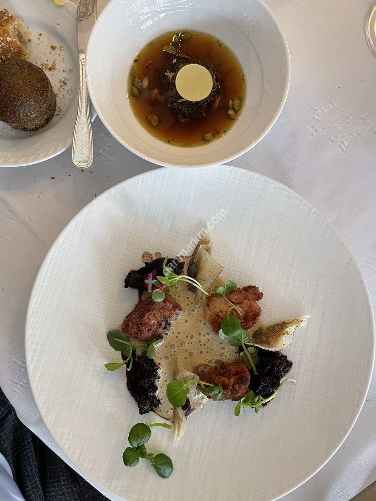 Helt fantastisk oplevelse. Alt var til mere end 5 stjerner. Hvis der skal spises Michelin, så er det her. Det er ikke for sjov de har vundet EM Bocuse d'Or. Tjenerskabet var helt igennem fantastisk. Du når ikke at blive opmærksom på et behov før de har dækket det for dig, og de er ikke nærgående. Alt var balanceret til perfektion!Mad: 5/5