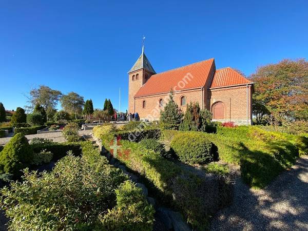 Fin, gammel, hvidkalket kirke, der ligger neden for en høj. Flere terrasser med grave...Tilføj dette kort til din hjemmeside;